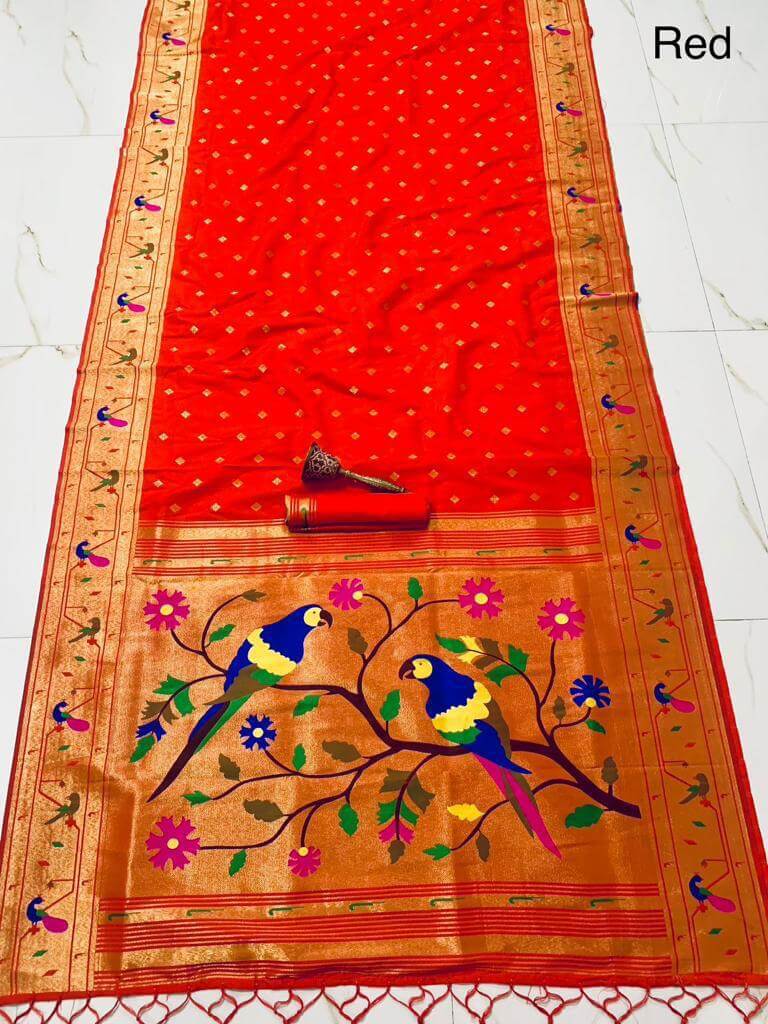 FABRIC:-PURE SOFT KANCHIVRAM PETHANI SILK ORIGINAL PURE brocket DESIGN AND zik zek peacock and parrot BORDER AND HEAVY MINA ZARI WEAVING